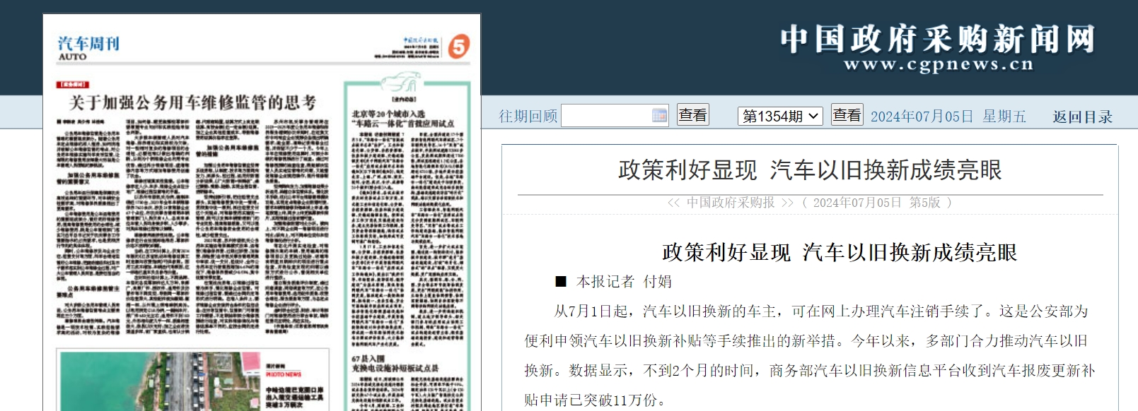 政策利好顯現(xiàn)汽車以舊換新成績(jī)亮眼