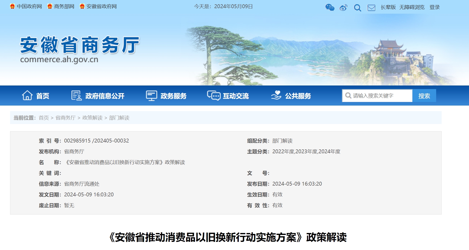 《安徽省推動消費品以舊換新行動實施方案》政策解讀