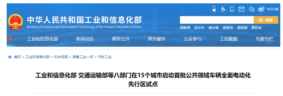 工信部等八部門(mén)在15個(gè)城市啟動(dòng)首批公共領(lǐng)域車(chē)輛全面電動(dòng)化先行區(qū)試點(diǎn)一圖讀懂(來(lái)源:裝備工業(yè)一司)