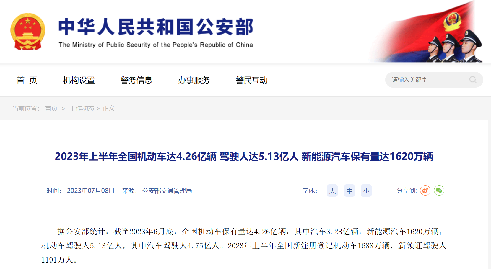 2023上半年全國機(jī)動(dòng)車保有量