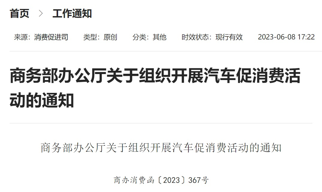 商務(wù)部辦公廳關(guān)于組織開展汽車促消費活動的通知
