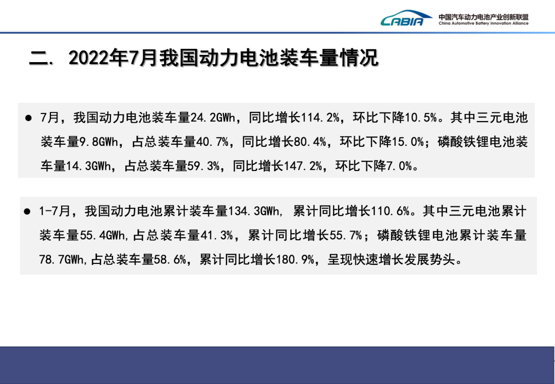 2022年7月動力電池月度數(shù)據(jù)發(fā)布如下。