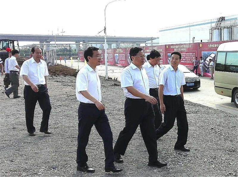 安徽省委常委、市委書記吳存榮在長(zhǎng)豐縣委書記許華的陪同下巡查皖中報(bào)廢汽車回收公司形象展板