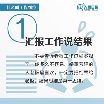 你知道什么叫“工作到位”嗎?匯報(bào)工作說結(jié)果,結(jié)果思維是第一思維;請示工作說方案,不要讓老板做問答題;做工作總結(jié)要描述流程,不只是先后順序邏輯清楚;布置工作說標(biāo)準(zhǔn),通過標(biāo)準(zhǔn)確定規(guī)范,劃定工作邊界……8張圖告訴你什么是真正的“工作到位”。
